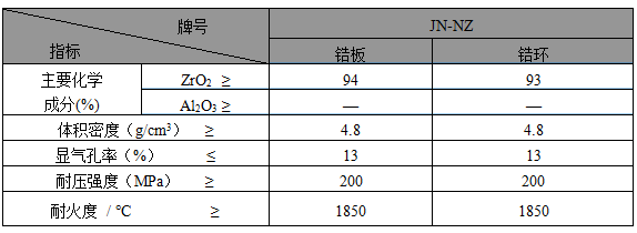 JN系列轉爐出鋼口鋯環及轉爐滑板磚 采用高純氧化鋯及特殊添加劑為原料,經過造粒等工藝處理后高壓成型,并經高溫燒成工藝而制成。具有外觀規整、熱震穩定性好、耐沖刷、壽命長等特點。
